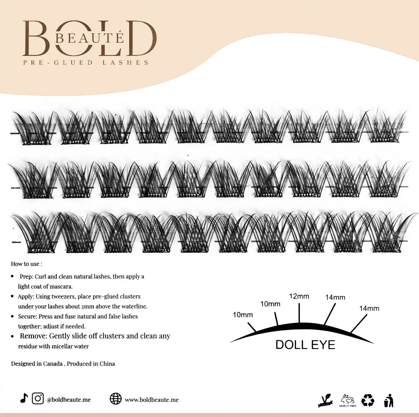 - Cat Eye style with natural-volume lengths from 10 mm to 14 mm